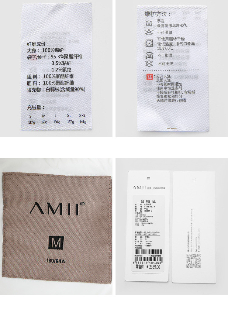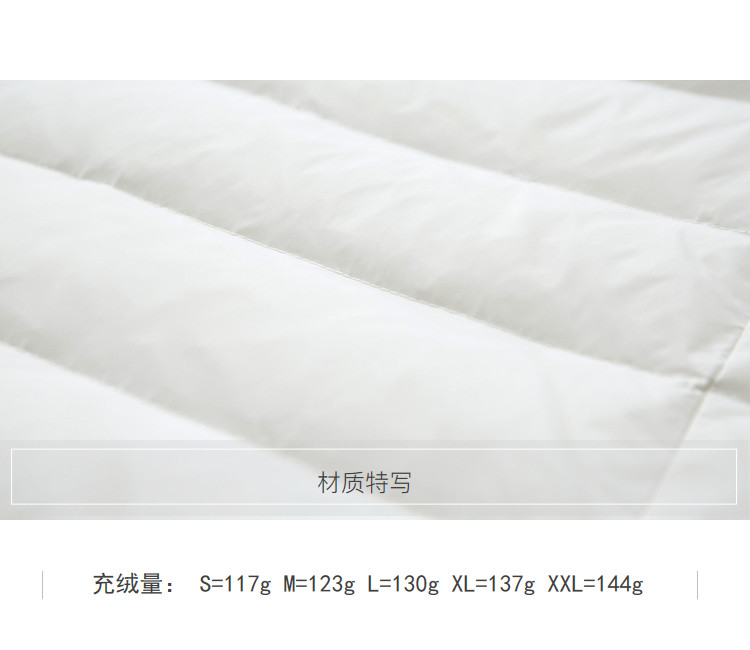 | 面料成分: | 大身:100%锦纶 袋子,领子:95.3%聚酯纤维 3.5%粘纤 1.2%氨纶 里料:100%聚酯纤维 胆料:100%聚酯纤维 |