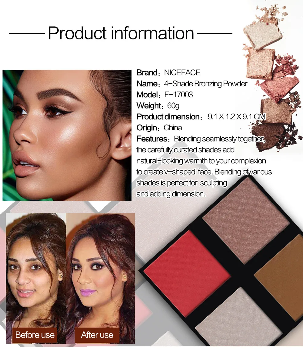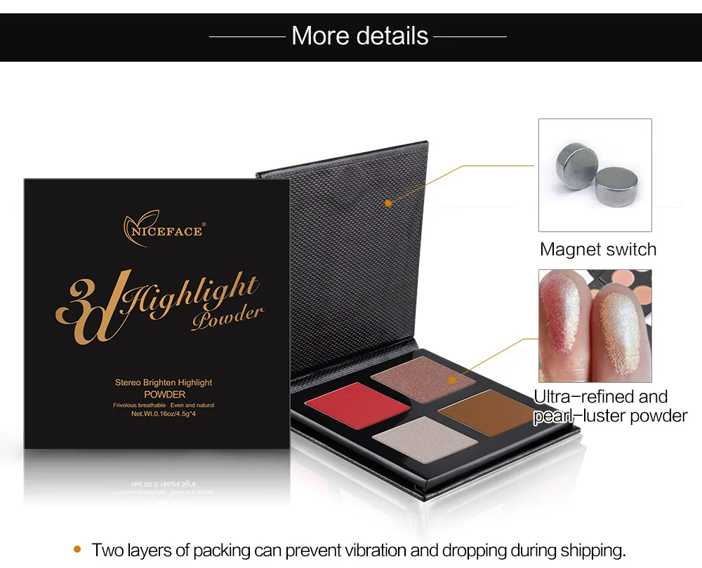 NICEFACE 4 Color Professional Face Highlighter Palette Corrector Brighten Highlighters