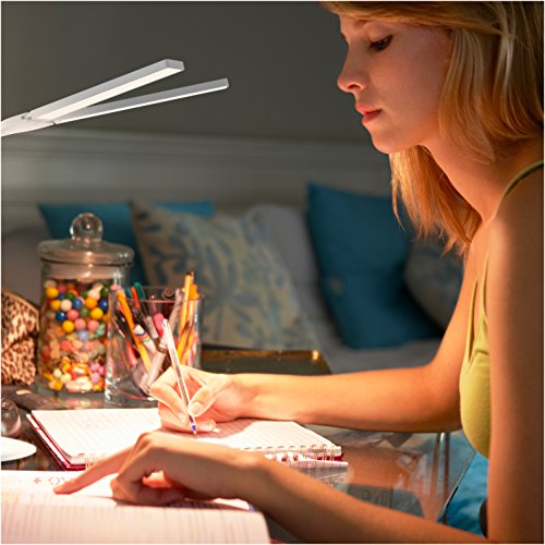 STEPLESS DIMMER – From a low of 150 lux to a high of 700 lux, the Twin head LED Desk Lamp can be as dim or as bright as the occasion calls for.