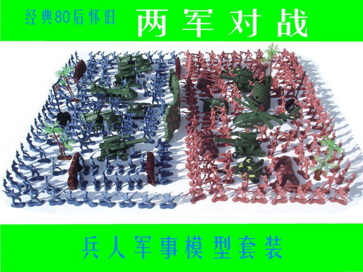 沙袋4块,小树4棵,石头4块,四轮炮4只,围墙3块,坦克2只,小炮楼1个,各国旗2面,9cm飞机2只,防空车2只,支奴干1架,直升飞机1架,4cm兵人240个左右