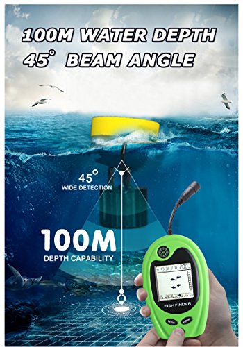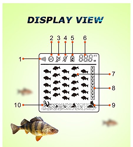 4.Various features settings:High/Low sensitivity setting , Fish depth scale, audible fish alarm ,User selectable meter or feet readings,Waterproof design: level-4 (spray-water-proof),Able to shoot through boat hull and clear ice.