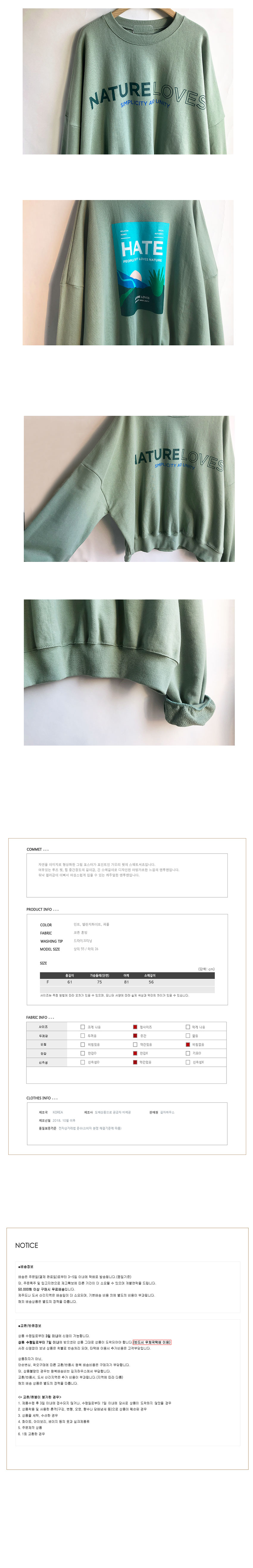 free(단면): 총장 61cm, 가슴둘레 75cm, 어깨 81cm, 소매길이 56cm