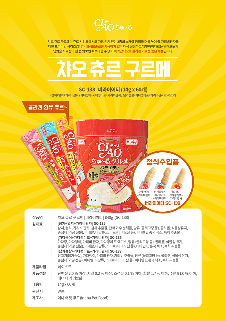 Variety 14gX60 pieces Chur 1 piece Cat pouch Stick cat snack
