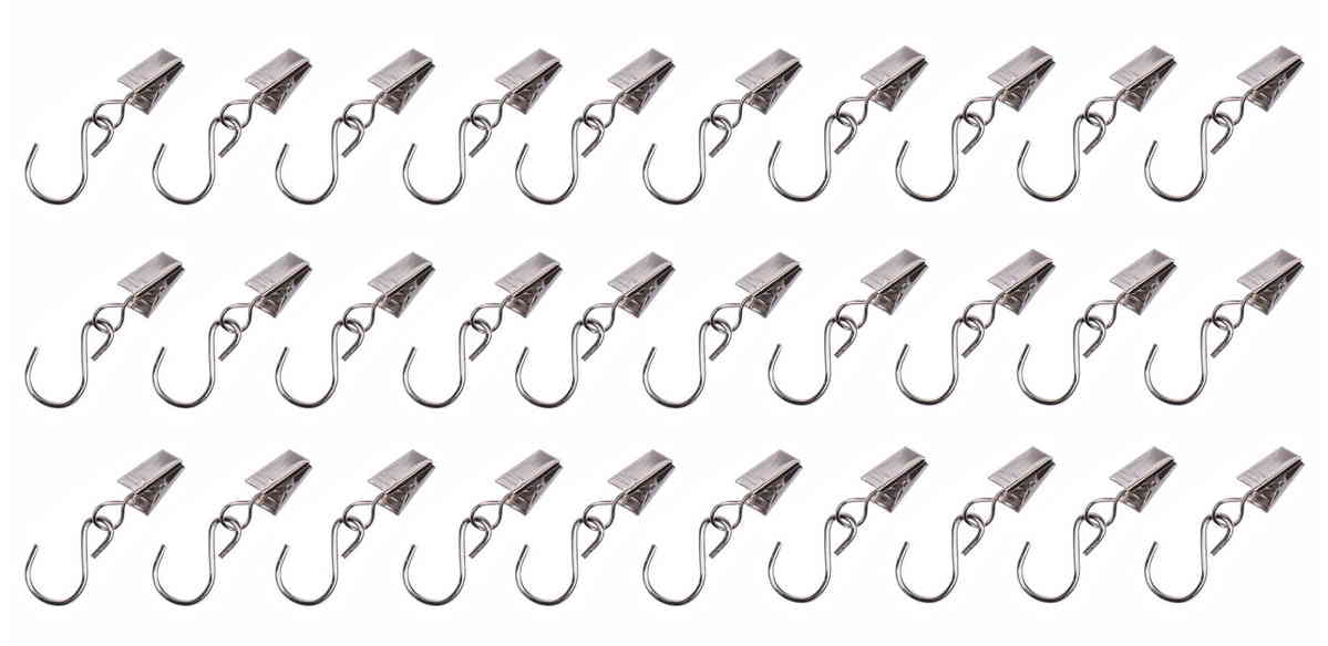 【30個セット】 オシャレで実用的 S字型 リング カーテン クリップ シルバー カーテン タッセル 付