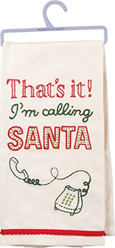 Primitives by Kathy Calling Santa 18 Inches x 26 Inches Cotton Dish Towel Kitchen Linen Sets