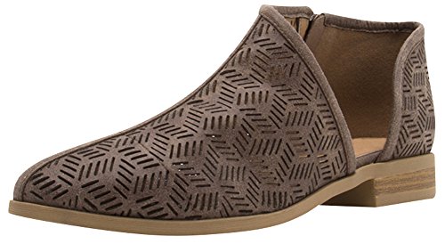 Product Description This ankle boot from Cambridge Select features a closed, almond toe, an all-over perforated pattern, cut-out side, and a low, stacked heel. Imported. 0