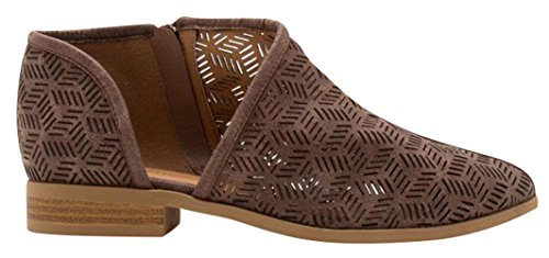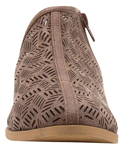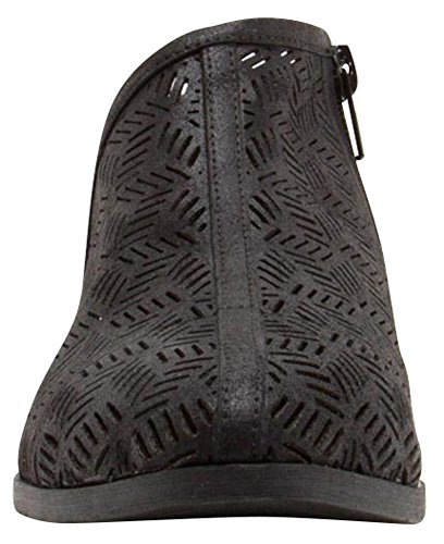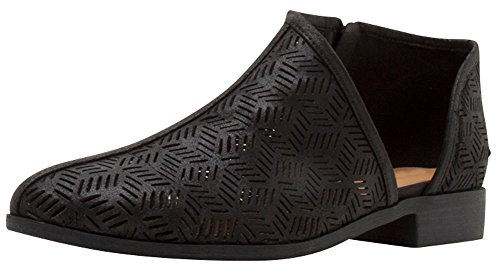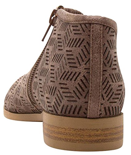 Cambridge Select Women's Perforated Side Cut Out Chunky Block Low Heel Shootie Ankle Bootie
