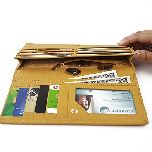 Capacity: 11 card slots, one clear photo ID slot, 3 separate full length bill pockets to hold currency, checkbook or even your Iphone 6 or 6s, 1 zippered pocket to hold receipts, keys or coins. One wallet contains all your stuffs Gift box wrapped. We have other models in our store for men and women, please take a look.