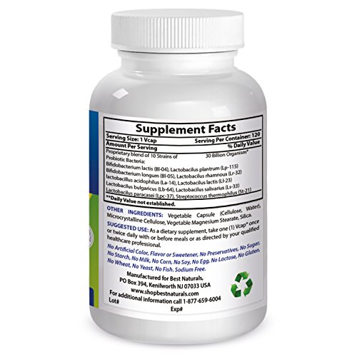-. Title : #1 Probiotic 10 Strains 30 Billion SHELF STABLE Veggie Caps by Best Naturals - featuring 10 different strains with 30 billion activity per vcap - Improve Digestion, Immune Function, & Bone Density. Improve Bowel Regularity, Vitamin Production & Increase Energy - Manufactured in a USA Based GMP Certified and FDA Inspected Facility and Third Party Tested for Purity. Guaranteed!!