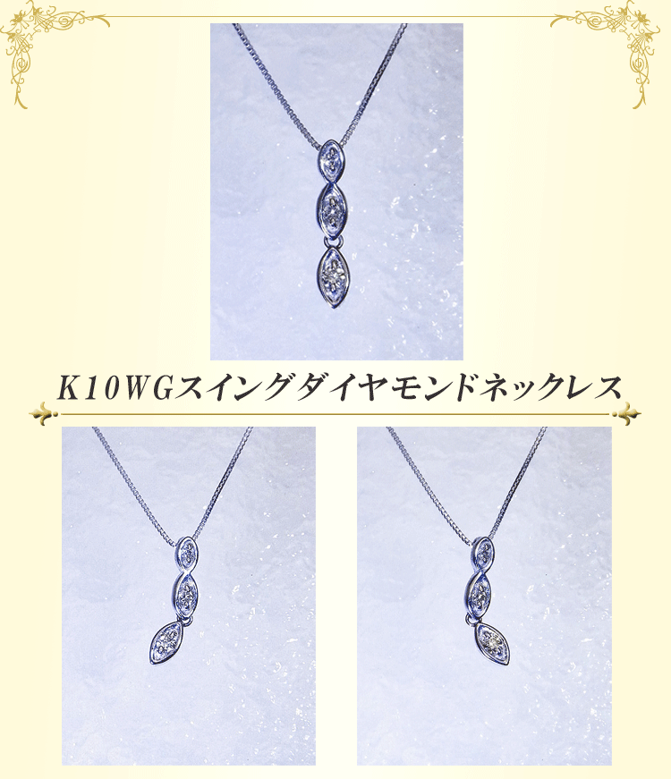 商品説明 下のパーツがスイングするオシャレなホワイトゴールドのダイヤモンドネックレスです。