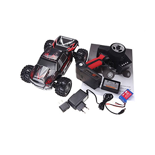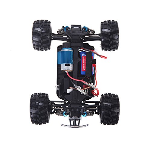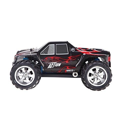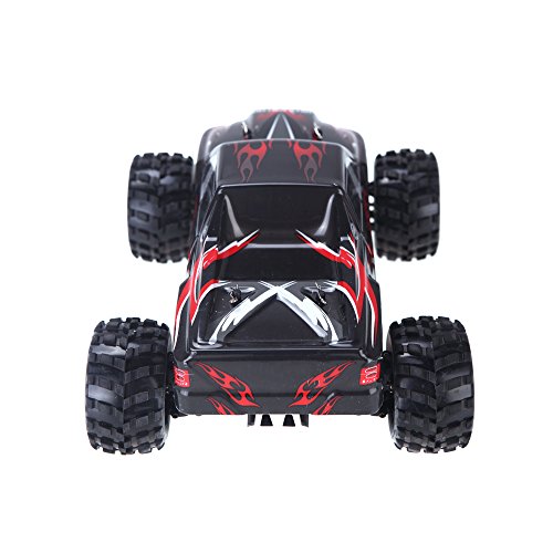 Specification: Vehicle Length: 253mm Vehicle Width: 200mm Height: 115mm Wheelbase: 165mm Wheel diameter: 71mm Wheel width: 40mm Motor: 390 Gross Weight for car: about 1.7KG Transmitter frequency: 2.4Gh Transmitter battery: 4 * AA (not included) Battery Power: 7.4V 1100MAH Run time: about 10 min Charging time: 150min Control distance: more than 100m Servo: 16g Color: Black Package Size: 30 * 21.5 * 21.5cm / 11.8 * 8.5 * 8.5in Package Weight: 1623g / 3.6lb