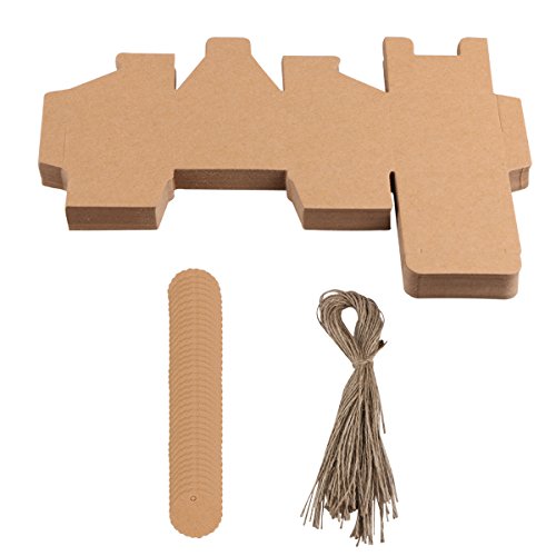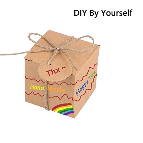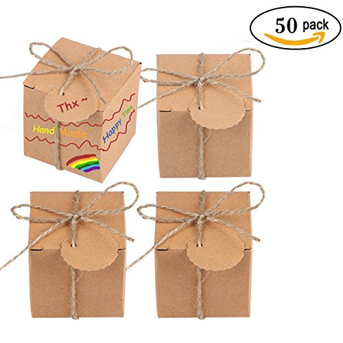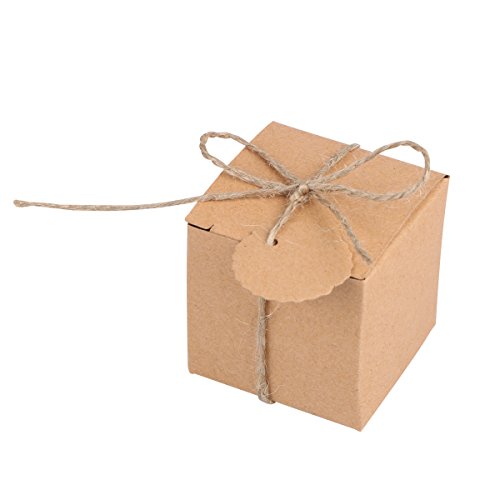 50pcs Kraft Candy Boxes Gift Boxes with 50pcs Twine and Tags, Rustic Kraft Paper Candy Box for Rustic Wedding Party,(2x2x2 inch) Aunifun (Brown)