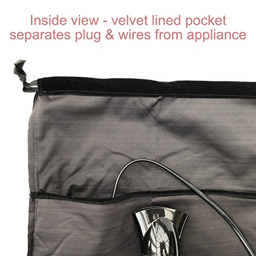 - ★ CLEVER PLUG & WIRE STORAGE - The velvet lined internal pocket allows you to store your hair dryer on one side, while keeping your plug and wires in the other side of the bag. You won’t scratch your appliances against the sharp plug. Each pocket can also safely hold a shoe, high heel or stiletto.