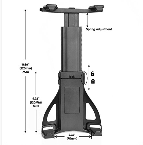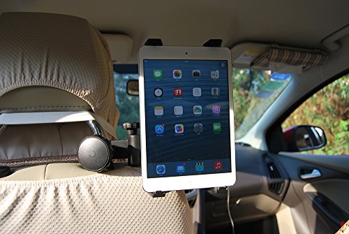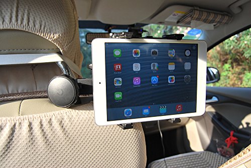 -. Feature : Designed for 5-11 inch tablet with or without a case. SP.R.Ing-loaded universal tablet holder/cradle will keep your device in place even on bumpy roads. / Headrest Tablet Kit is a safe and secure mounting solution for tablets inside your vehicle.Headrest mount can be positioned between the driver and passenger seats so that two backseat passengers can view the screen. / 360 degree rotation adjustable / easy one-hand operation, and is crash secure with integrated rubber foam pads to ensure a secure installation, and reduced vibration. / Lifetime Satisfaction Guarantee