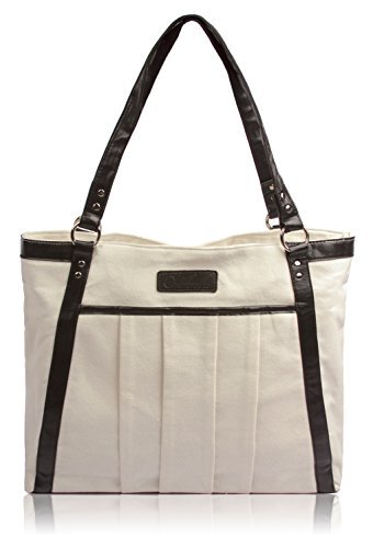 -. Binding : Personal Computers -. Brand : Overbrooke -. ClothingSize : Large -. Department : unisex-adult -. Feature : Padded Laptop Compartment - Specially designed compartment fits and protects laptops up to 15.6 inches in screen size in this Large Carryall Tote Bag. / Easy Transport on Rolling Lage - Slide-through back zipper allows for easy attachment to rolling suitcase handles. / Materials: 100% Cotton Canvas with leather-like exterior accents. Nylon interior for durability and easy cleaning. / Bag Style: Business Professional Tote Handbag Work Bags Travel School Everyday College Computer Case Purse Ladies Briefcase Accessories. For all Apple Macbook Pro and Air, Ultrabooks, Notebook PCs, Laptop Computers, Netbooks - 10, 11, 11.6, 12, 13, 13.3, 14, 14.7, 15, 15.4, 15.6 inches. / Dimensions: 17.5 x 13.5 x 4.5". Lightweight 1.6 lbs. Laptop Compartment: 15" wide. Photos show 15.6 inch Dell laptop. -. ProductGroup : PC Accessory -. ProductTypeName : CARRYING_CASE_OR_BAG -. Size : Large -. Title : Overbrooke Classic Canvas Laptop Tote Bag - Womens Shoulder Bag for Laptops 13", 14" and up to 15.6 Inches