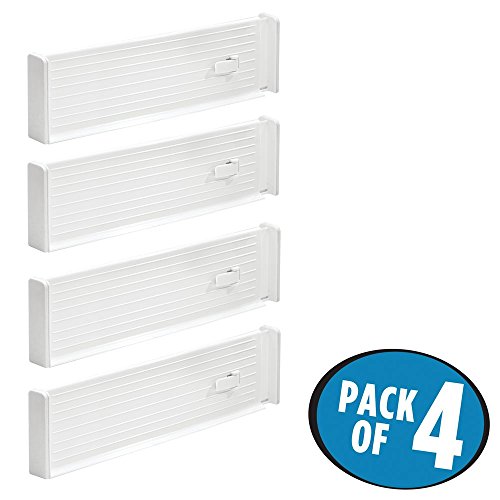 mDesign Adjustable Deep Drawer Organizer Dividers for Kitchen or Dresser - Pack of 4, White ?