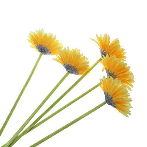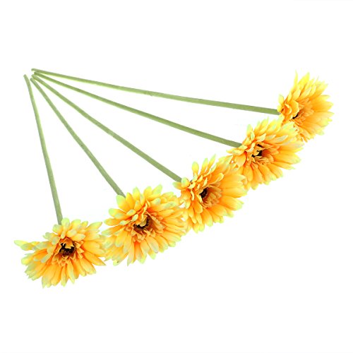 ULTNICE 5pcs Wedding Gerbera Daisy Artificial Flowers for Home Decoration (Yellow)