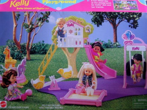 -. Feature : Kelly, Baby Sister of Barbie Doll Playground is a 1998 Arcotoys, Mattel produciton. / Includes: Play Treehouse w/Slide & Ladder, Merry-Go-Round, See Saw, Swing, Sand Box, Pail, Shovel, Train & Carts, Ball. / ADULT ASSEMBLY REQUIRED. For Ages 3+ Years. Playset intended for Kelly & 4.5" fashion dolls; NO DOLLS included. / All provided details are to the best of my ability & may not be exact; colors may vary from those shown on box & sizes, styles & details may vary. PLEASE check for Box Condition Information in CONDITION NOTE/Comments section. / For Box Condition Information, see CONDITION NOTE or Email Seller for details.