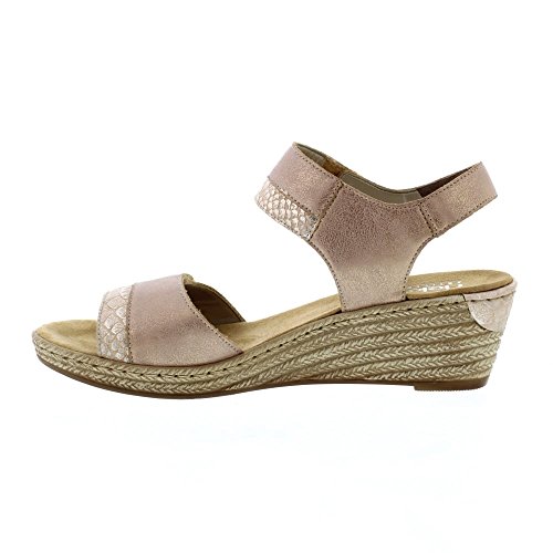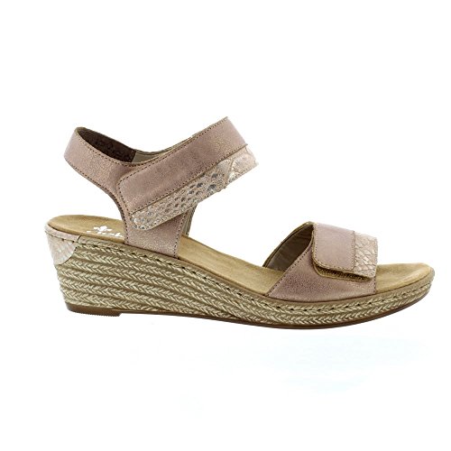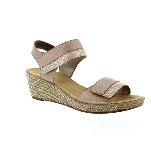 Studio : Rieker Publisher : Rieker Binding : Apparel Product Description A stylish pair of sandals with a mid-height wedge heel for a subtle height boost. Featuring dual Velcro straps for an adjustable and a more secure fit. Designed with Rieker's signature Antistress technology which provides shock absorption and flexibility. 0