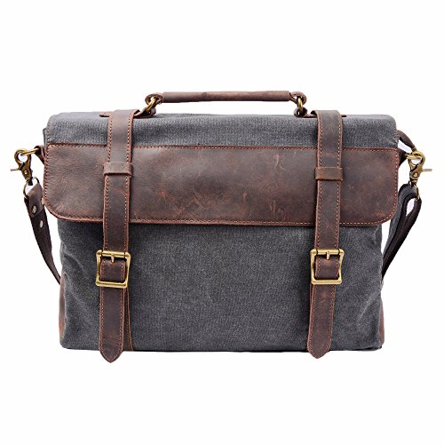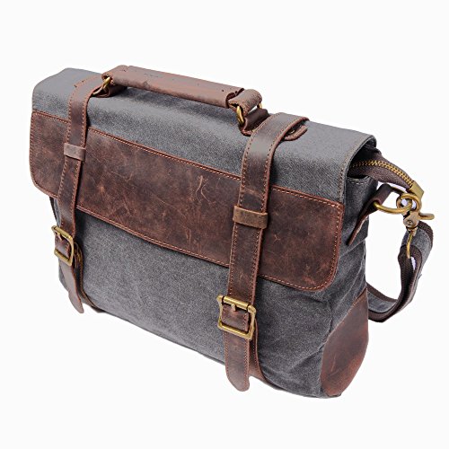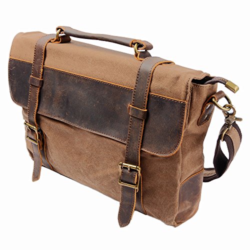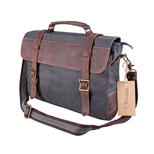 -. Title : Y-DOUBLE Vintage Messenger Bag Umhängetasche Aktentasche Schultertasche 14 Zoll Laptoptasche Notebooktasche aus Canvas und Leder