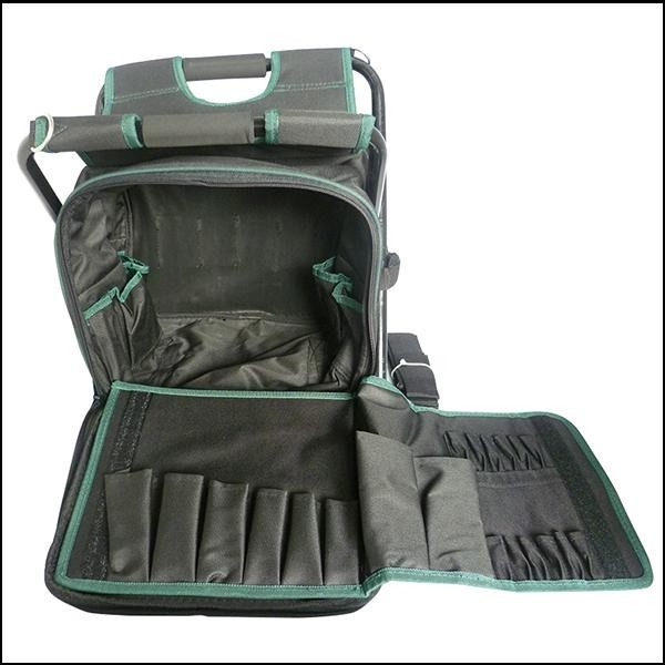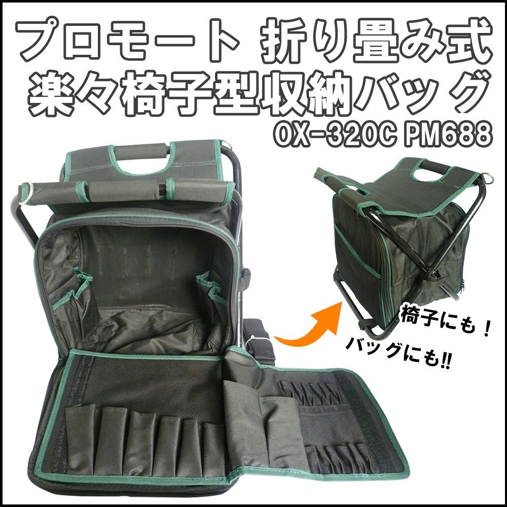 || 商品詳細説明 ||工具等の収納に。折りたたんで付属のショルダーを取り付けてバッグとして。更にバッグを広げてイスとして使用できます。 製造国:中国 素材・材質:ナイロン、他 商品サイズ:320×340×350mm 仕様:椅子時耐荷重:100kgショルダー長さ:65~110cm