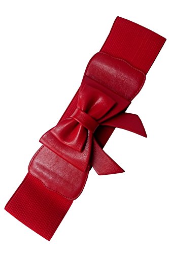 Product Description An instant perfect hourglass figure! This elastic beauty is made of deep red faux leather and features a classy bow. Hook the bow onto the closure for an extra vintage touch to your retro fifties outfit! 0