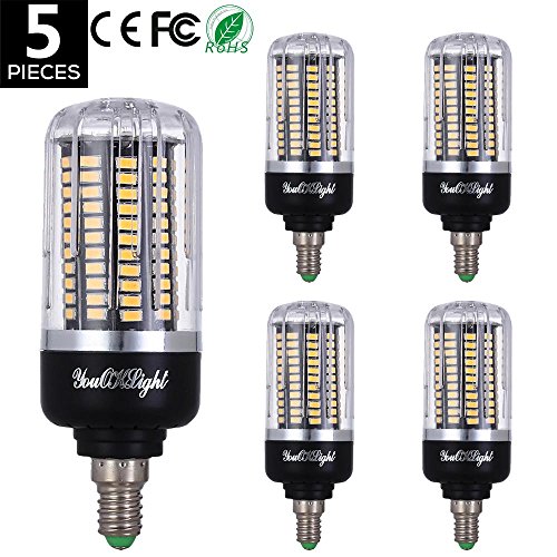 YouOKLight 5-Pack E12 14W LED Corn Bulb Cool White Light 1398LM 130 pcs 5736 SMD High Luminous for Indoor Lighting AC 85-265V