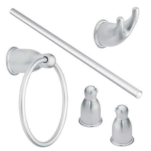 - Kit includes double robe hook, 24-in towel bar, towel ring