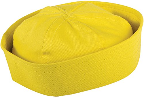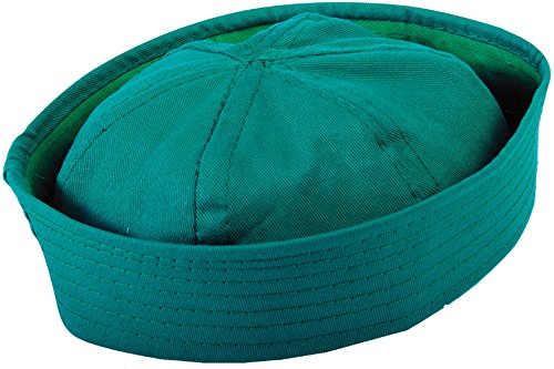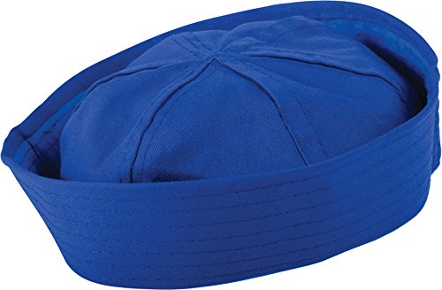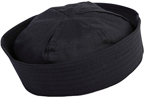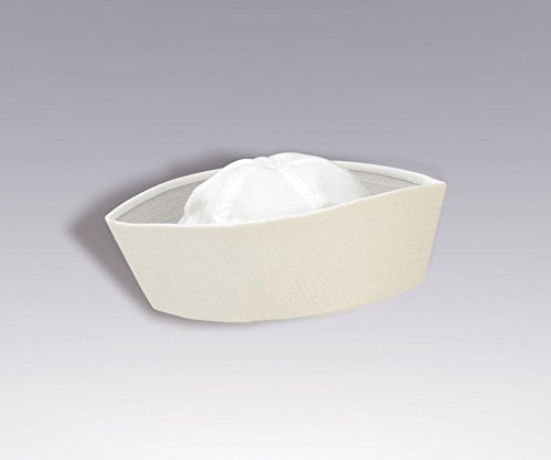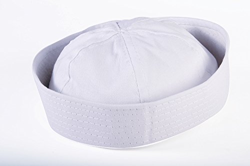 An authentic naval cap. All cotton. Hat is approximately 24" in circumference, 8.5" in diameter and the brim is 3" tall.