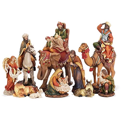 10 PIECE RESIN NATIVITY SET WITH ANIMALS AND REMOVABLE BABY