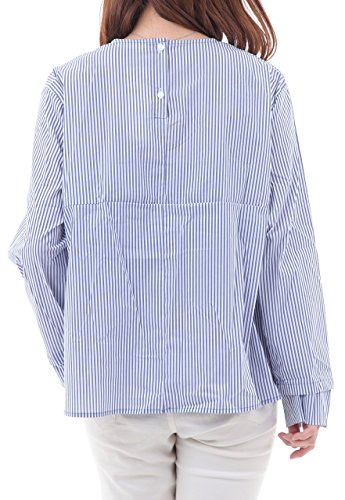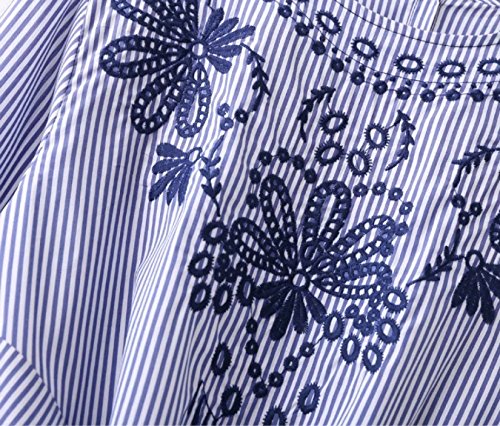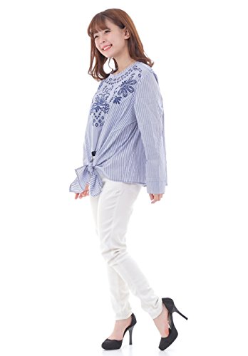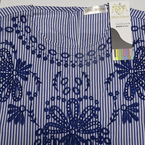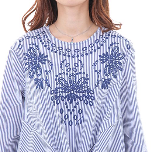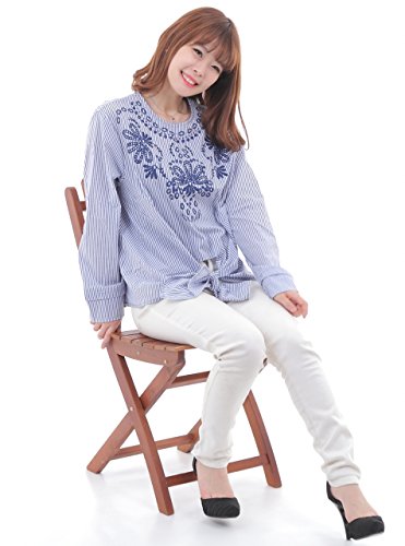 -. Title : (プレイズショパン) 花柄 刺繍 シャツ ブラウス レディース ストライプ 柄 前結び (L, ブルーストライプ)