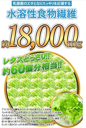 유산균을 지원하는 화제의 【비피더스 균】과 【락토페린】을 비롯해 양상추 약 60개분에 필적하는 【수용성식이 섬유】와