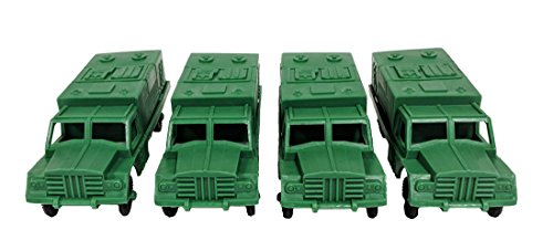 -. Feature : 4 Pieces Large Medic Army Trucks / Dimensions: 5" x 1.75" x 2" (LxWxH) / Trucks have moving wheels / Color: Green / Material: Plastic