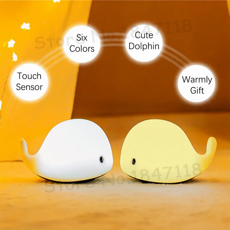 Novelty Dolphin Touch Sensor Night Light USB Multicolor LED Light Silicone Gel Pat Night Lamp for Child Bedroom Desk Lights 2017