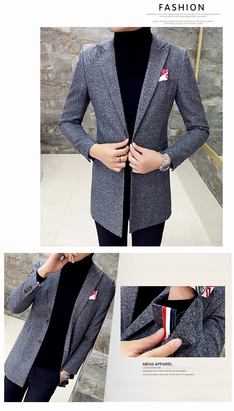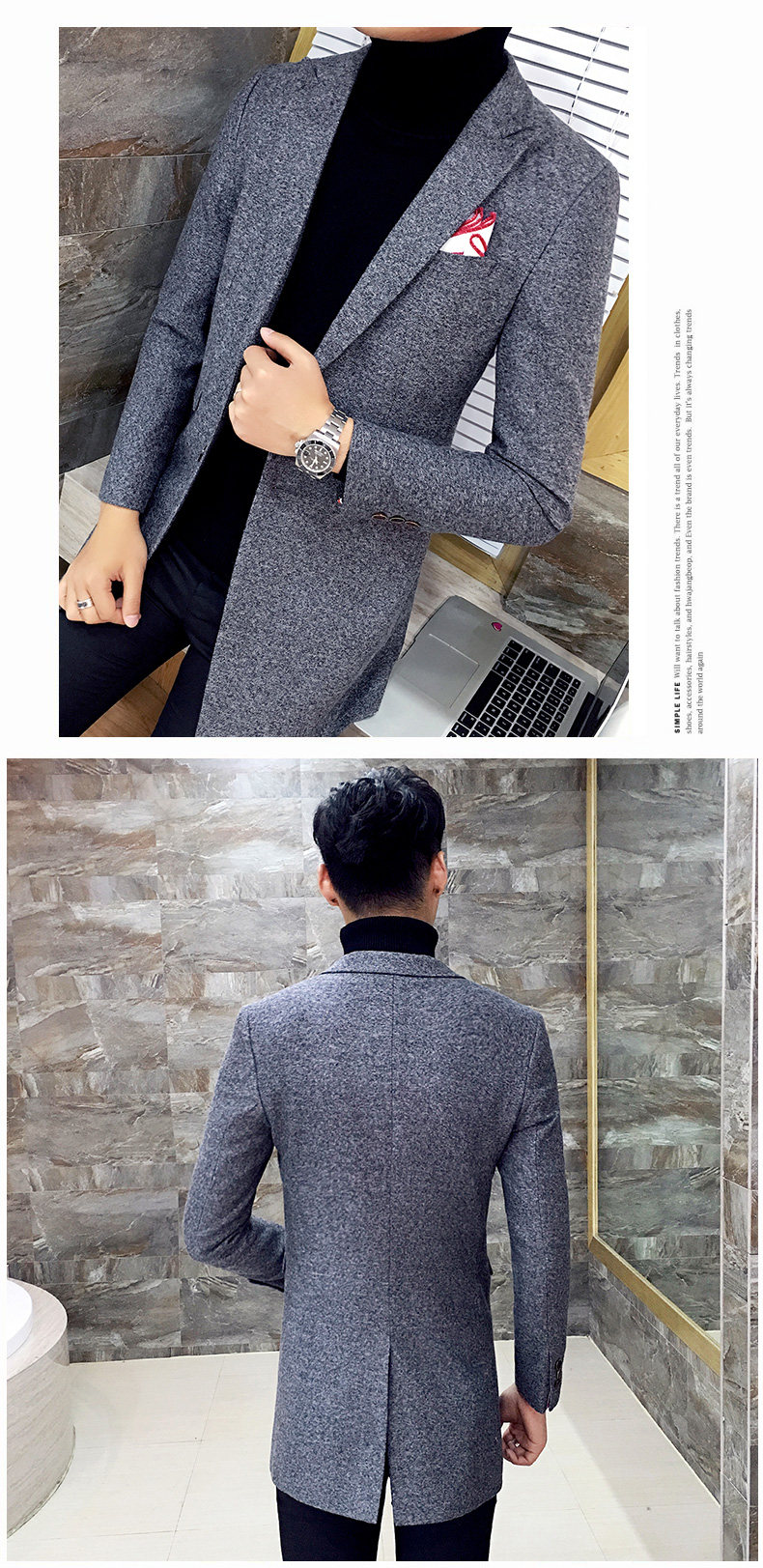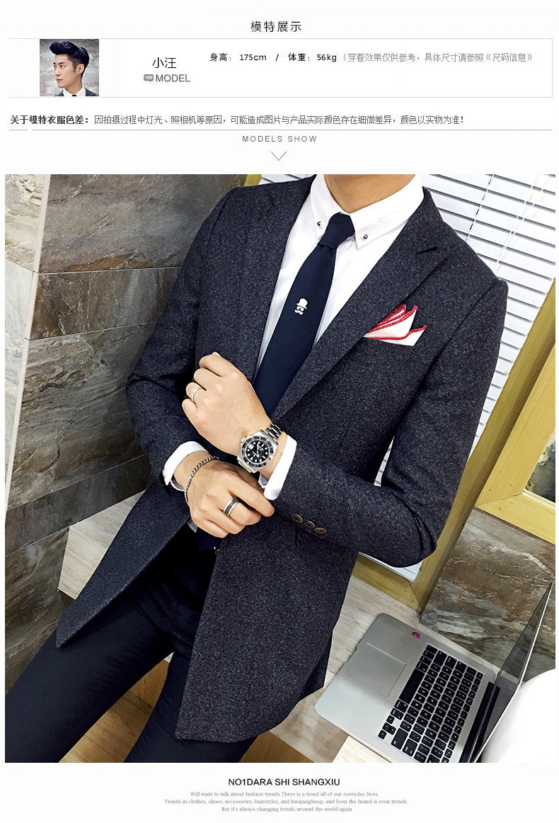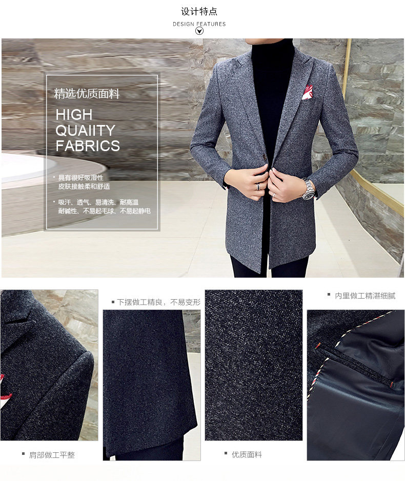 秋冬季英伦修身毛呢大衣男青年中长款外套风衣男士呢子大衣男韩版