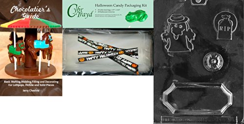 Cybrtrayd "Halloween Centerpiece" Chocolate Mold with Chocolatier's Bundle, Includes 25 Cello Bags and 25 Happy Halloween Twist Ties