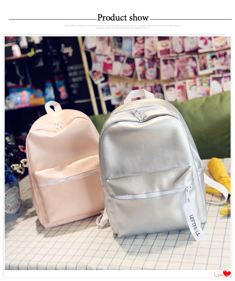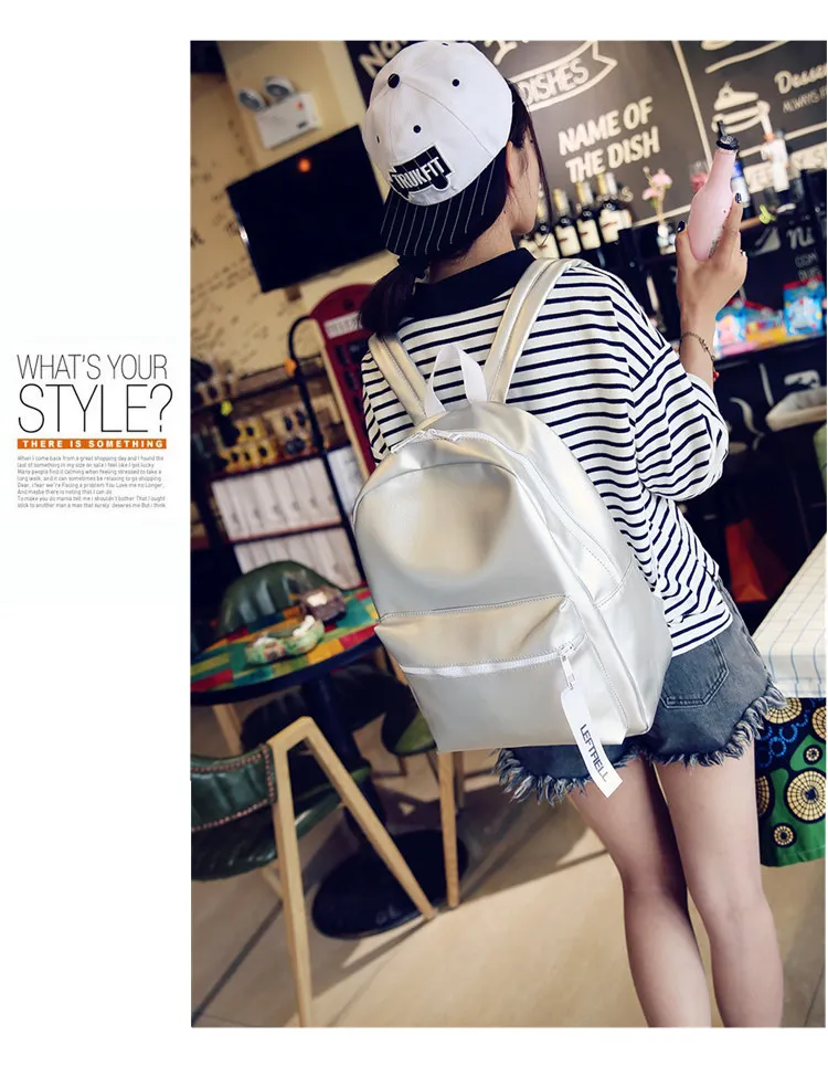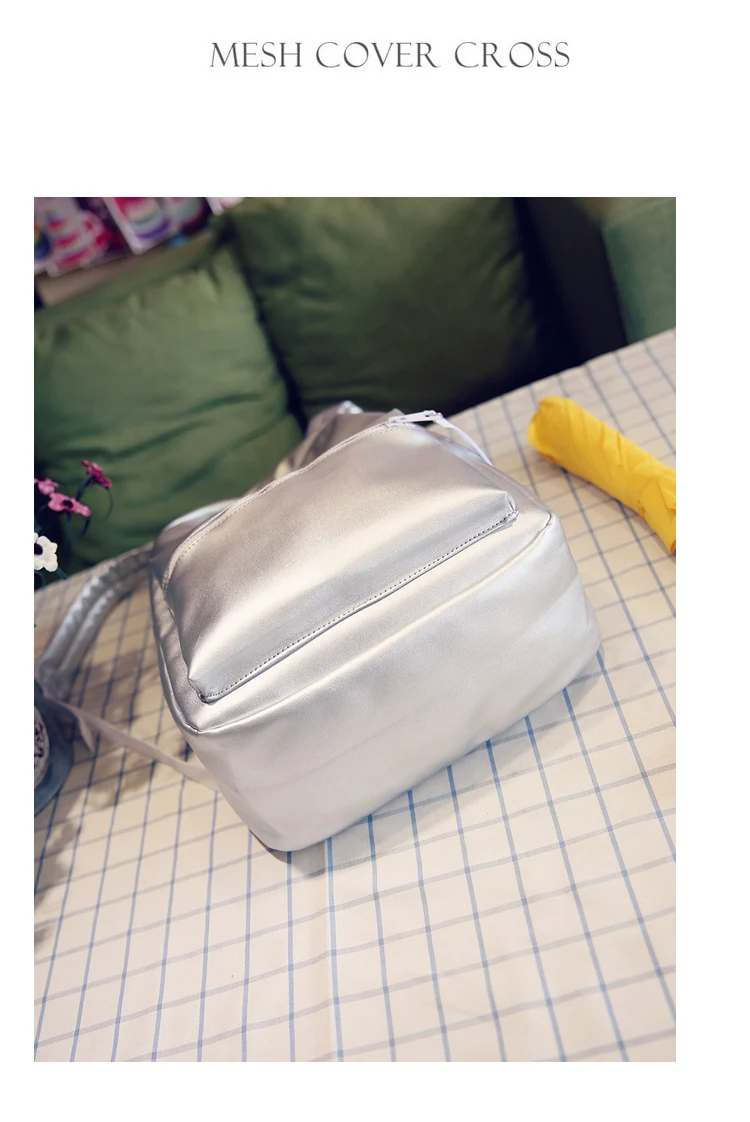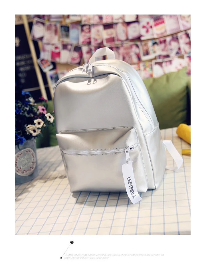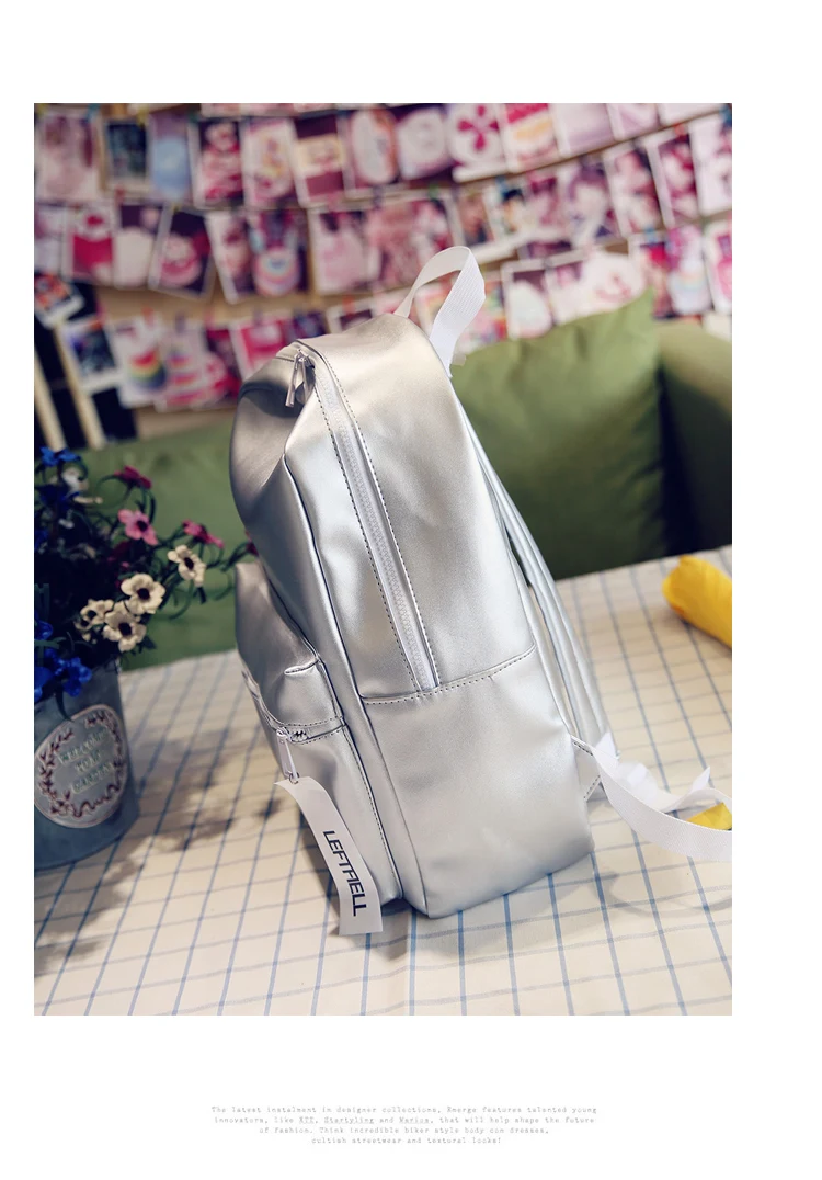 女性シルバーバックパック光沢バックパック用十代の女の子ホログラフィックpuレザーバッグピンク学生スクールリュックサック