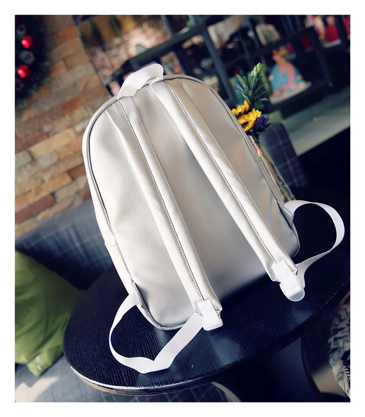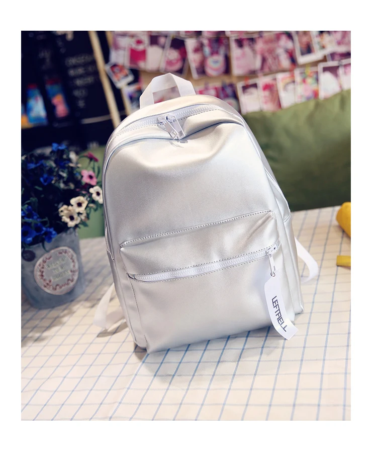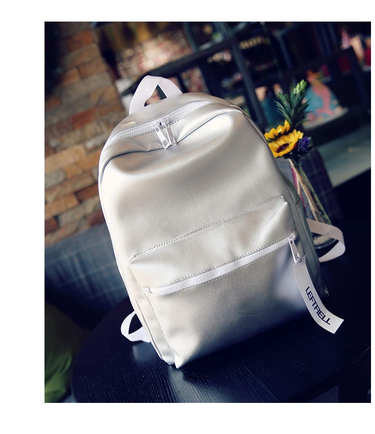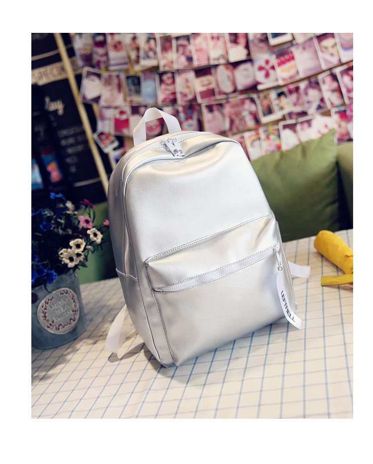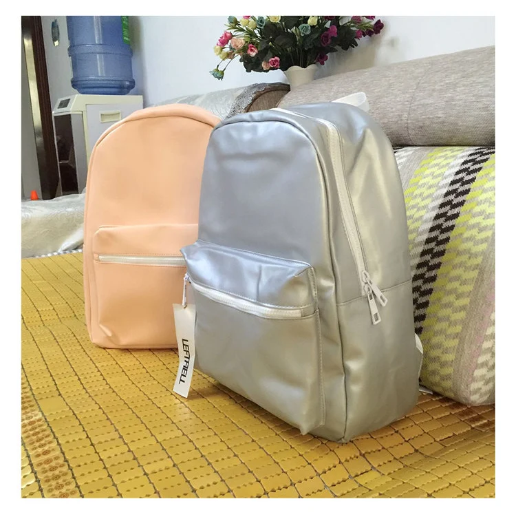 女性シルバーバックパック光沢バックパック用十代の女の子ホログラフィックpuレザーバッグピンク学生スクールリュックサック