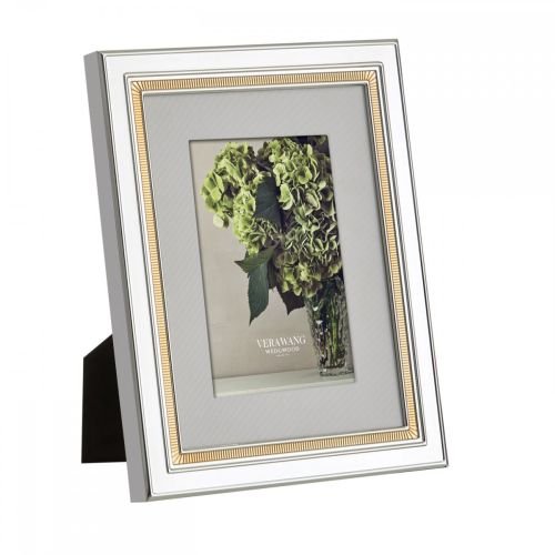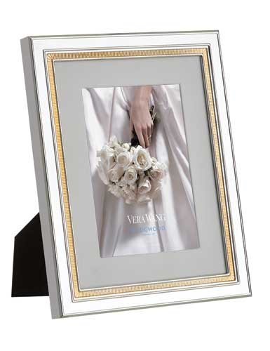 Chime Gold Frames incorporate an elegant band of architecturally detailed gold against silver plate for cherished photos.