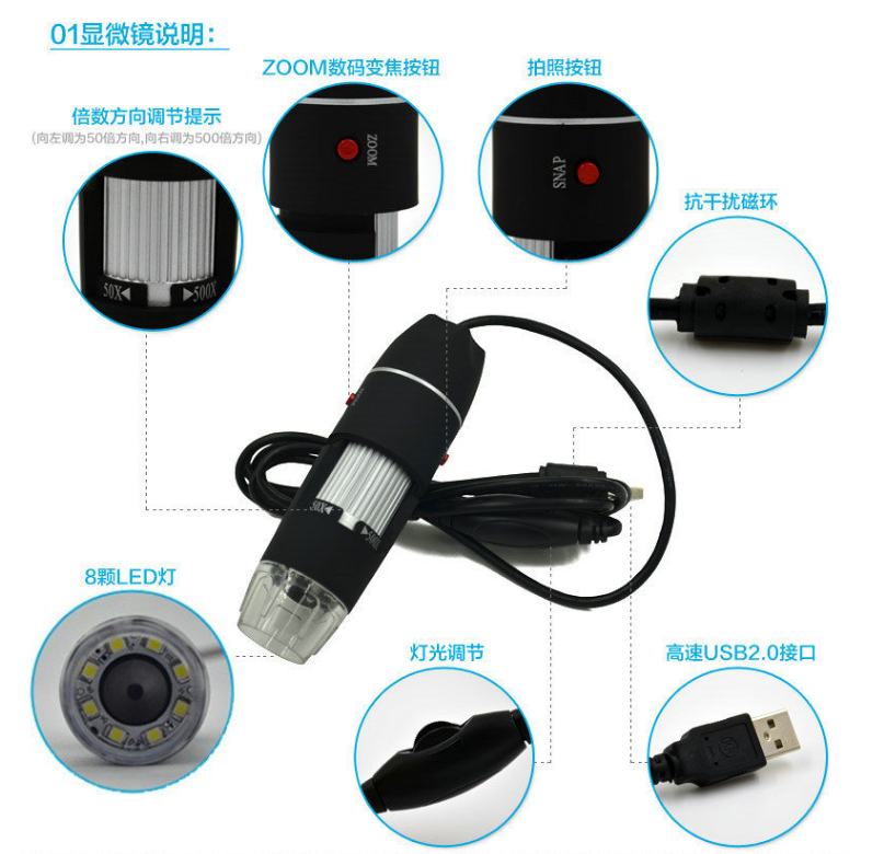 New Mega Pixels 500X 8 LED USB Digital Microscope Endoscope Camera Microscopio Magnifieru0026nbsp;