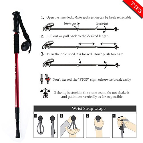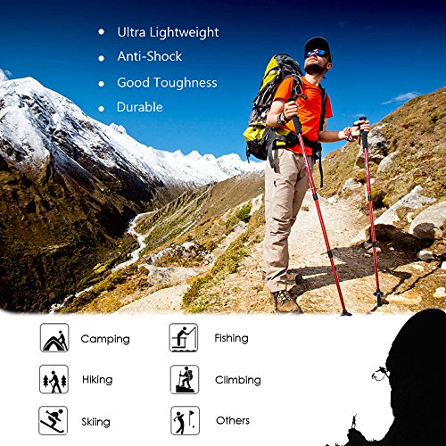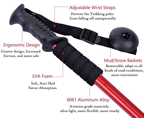 Adjustable height telescopic poles- adjustable from 25.5 to 53 inches featuring an easy twist lock height adjustment. perfect for everyone from short to tall. comfortable grips.