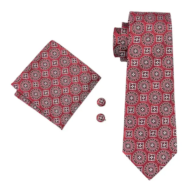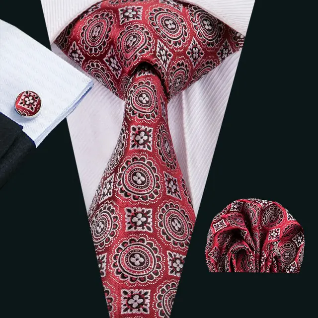| [해외]LS-1565 배리. 좋아서 클래식 남성 넥타이 100% 실크 레드 참신 넥타이 손수건 커프스 세트 남성 웨딩 파티 비즈니스 |