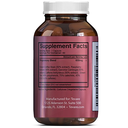 Boost your immune system, burn belly fat fast, lose weight the all natural way and enhance your metabolism all thanks to these Garcinia, Green Coffee Beans, Raspberry Ketones and Green Tea supplement from Tevare. All of the substances within the capsules have been carefully chosen for their potent and pure qualities. Raspberry Ketones are a power way to boost the immune system - but they will also help your body to build lean muscle. Garcinia Cambogia is a potent capsule that will promote weight loss in men and women. Not only will it help with all natural weight loss, but this ingredient will also help to burn fat as well as suppress the appetite. Another way to boost the metabolism is through the use of Green Tea as an ingredient. The Catechins and EGCG that are within this substance can lead to quicker weight loss and enhanced energy levels - which will help you hit your workout goals. All of this would be amazing, but Green Coffee Bean extract will help to enhance the fat burning that the hormone Adiponectin does.Feature