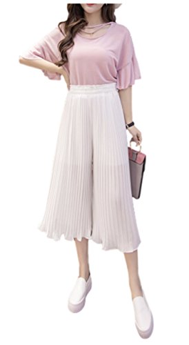 -. Title : (ワン アンブ) ONE UMB ふんわり シフォン ガウチョ パンツ スカーチョ プリーツ 裾 フレア 4色展開 M 〜 XL レディース