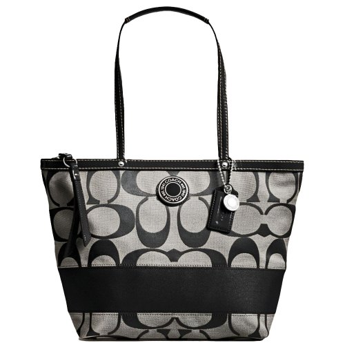 -. Title : Coach 19046 Black White Signature Stripe Tote Nwt