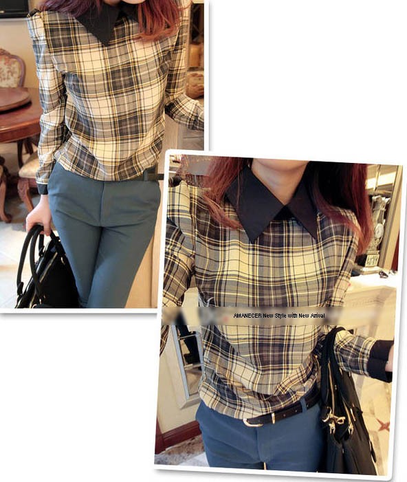【入荷後営業日2,3日以内出荷予定 通関待ちや不良により出荷遅くなる場合はメールにてご連絡いたします。メール受信設定によっては正常に受信されない場合はございますので、 弊社からのメールを予め受信頂くようご設定くださいませ。】 トップス シャツブラウス チェック柄シャツブラウス シフォンブラウス 大人可愛い レディス レディース 春 新作襟付き長袖チェック柄シフォンシャツブラウス◆素材:ポリエステル