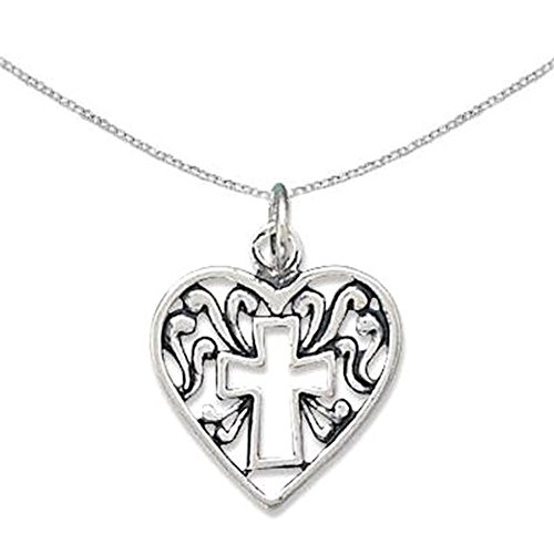 -. Title : Heart Cross Filigree Charm Pendant Sterling Silver, Chain Included