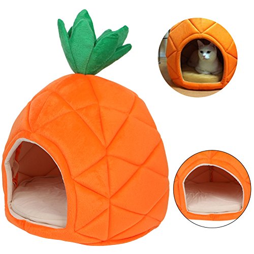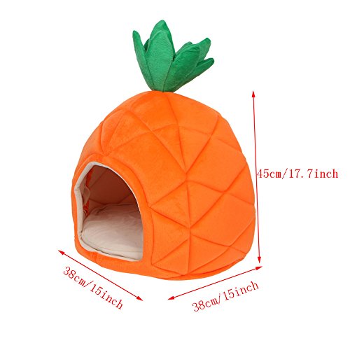 Description: 100% brand new and high quality High-grade material,soft and warm Lovely pineapple shape, bright color Sponge pad inside is detachable It will provide your pet with a comfortable and warm cozy nest to rest and sleep. Perfect for cats, kittens, puppies small dogs Material: Cotton BlendSponge Color: Orange Size: Approx. 38*38*45cm/15*15*17.71inch(suitable for your pet within 8kg) Quantity: 1PC Package includes: 1pc x Pet bed(not included animal) 0