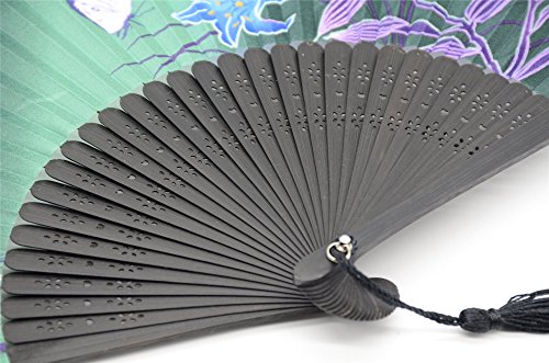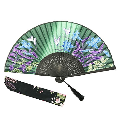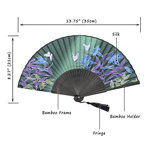 OMyTea Hand Held Silk Folding Fan with Bamboo Frame - With a Fabric Sleeve for Protection for Gifts - 100% Handmade Oriental Chinese / Japanese Vintage Retro Style - For Women Ladys Girls (WZS-27)