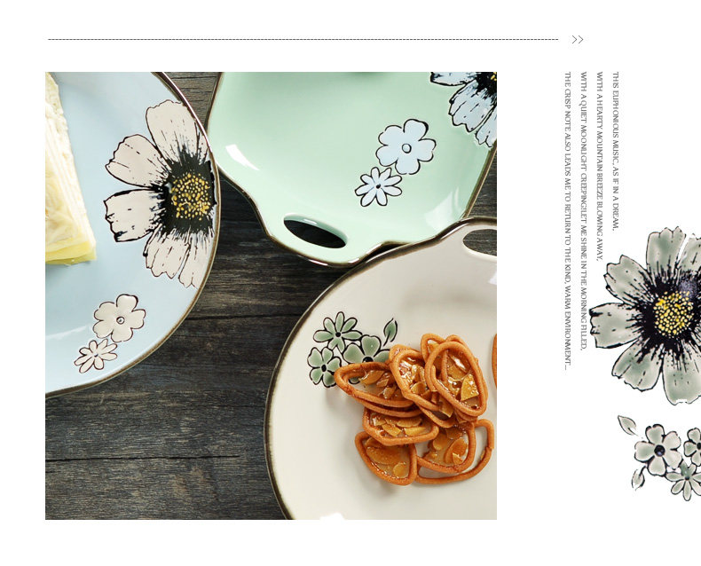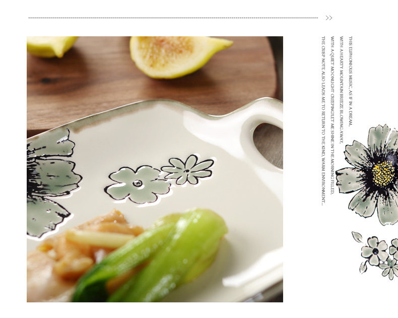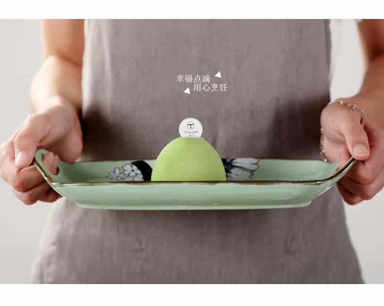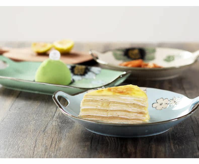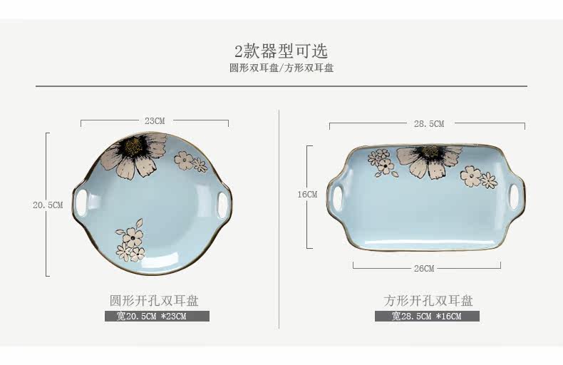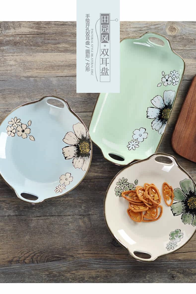 双耳长方形盘圆盘 双耳盘鱼盘水果盘甜品盘陶瓷餐具